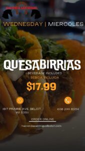 At Hacienda San Miguel, we bring the rich flavors of Mexico to the heart of Beloit. From sizzling tacos and burritos to traditional mole and chile relleno, every dish is crafted with love and bold spices. Come enjoy a warm, family-friendly atmosphere and generous portions that will keep you coming back for more.