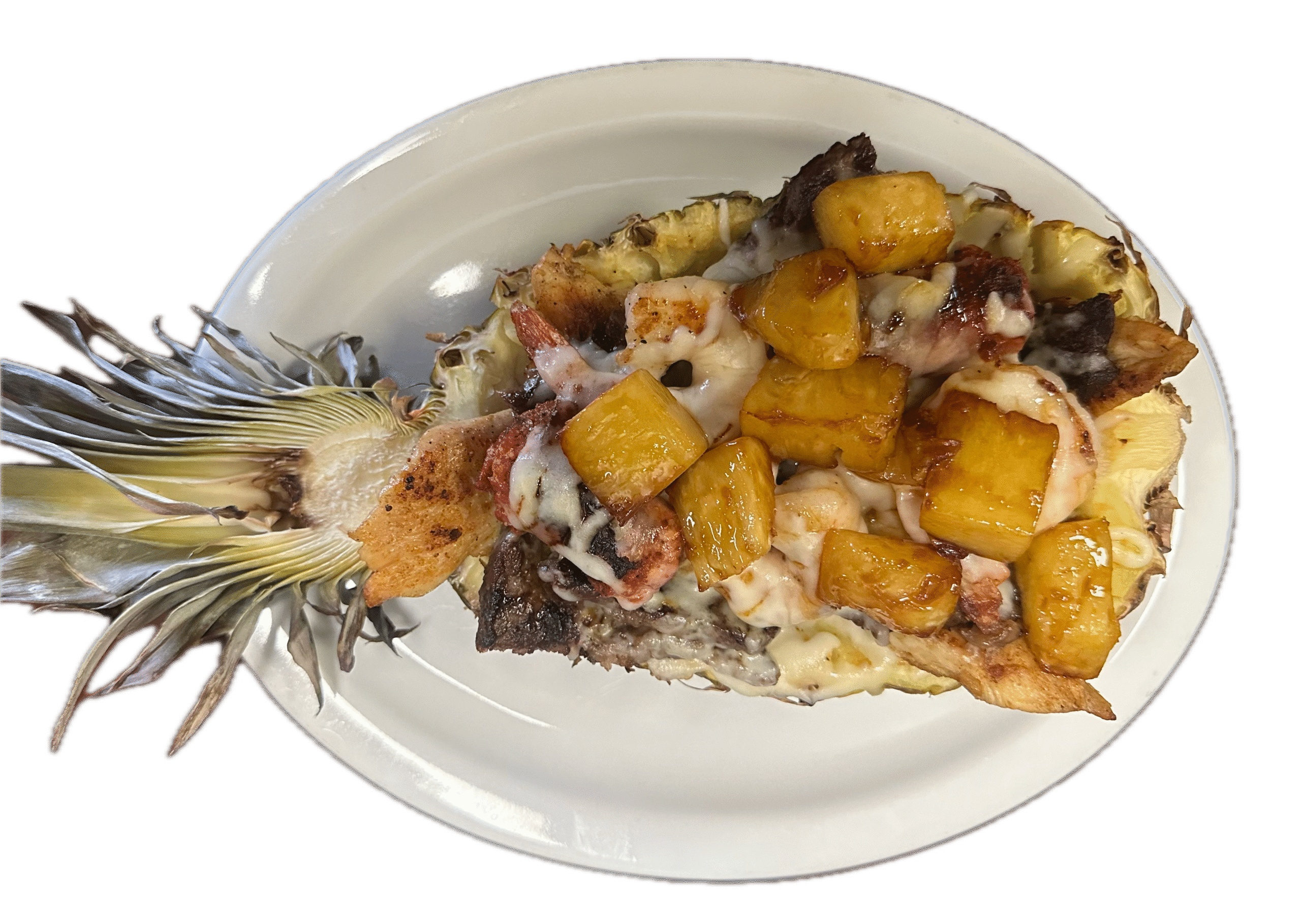 grilled pineapple filled with ribeye steak, chicken breast, shrimp, homemade chorizo and grilled jalaneros peppers topped with pineapple sauce and your choice of flour or corn tortillas $24.99